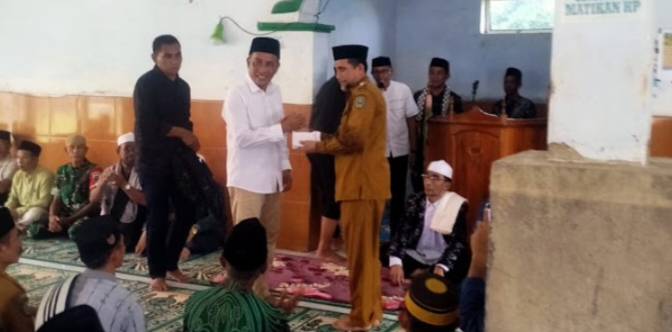 Bupati juga menyerahkan bantuan paket sembako kepada warga dan Al-Qur’an untuk keperluan Masjid setempat. (RED)