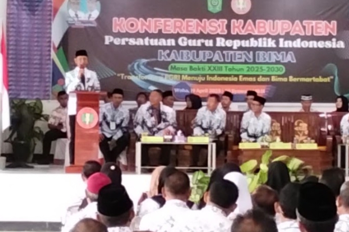 BIMA, Kabaroposisi. Id–Melalui Konferensi Kabupaten Persatuan Guru Republik Indonesia (PGRI) Kabupaten Bima Masa Bakti XXIII tahun 2025-2030 mengangkat Tema, Transformasi PGRI Menuju Indonesia Emas dan Bima Bermartabat”, berlangsung Sabtu (19/4/2025) di gedung PGRI Kabupaten Bima kecamatan Woha dihadiri oleh Wakil Bupati Bima dr. H.Irfan Zubaidy.