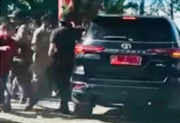 Bima, Kabaroposisi, Id– Mobil Dinas (Mobdis) Wakil Bupati (Wabup) Bima, dr. H. Irfan Zubaidy dihadang serta diduga dirusaki saat lewat depan Kampus Taman Siswa (Tamsis) Kabupaten Bima, saat melewati aksi demo Liga Mahasiswa Nasional Demokrat (LMND) pada Senin (21/4).