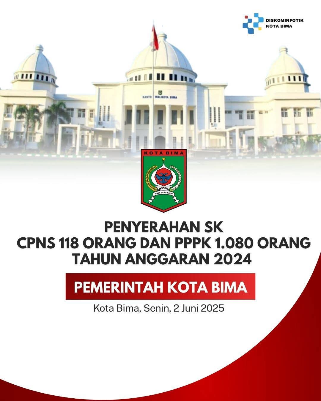 KOTA BIMA, Kabaroposisi, Id__ Pegawai PPPK Kota Bima akan segera terima SK pada Juni ini. Dari PPPK 1.080 orang, terdiri dari Tenaga Guru 273 orang, Tenaga Kesehatan 48 orang dan Tenaga Teknis 759 orang, Akan dilantik Senin 2 Juni 2025.