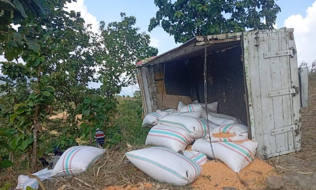 “Saat di perjalanan, mobil tersebut mengalami kerusakan yaitu, AS patung patah sehingga mobil oleng dan hilang kendali dan miring kekiri yang mengakibatkan kedua korban ikut terjatuh bersama dengan jagung,” tutur Kapolsek Soromandi.