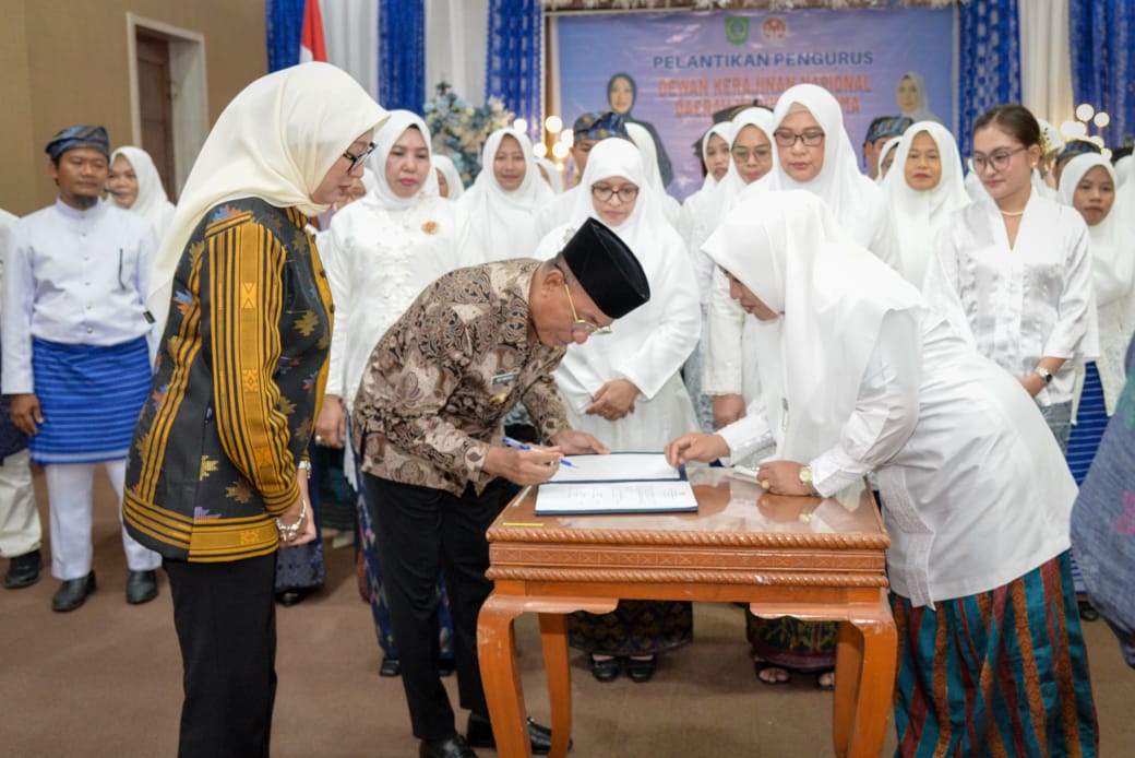 BIMA, Kabaroposisi, Id__ Penandatanganan berita acara pelantikan dan penyematan pin menandai Pelantikan Pengurus Dewan Kerajinan Nasional Daerah Kabupaten Bima Masa Bakti 2025-2030, berlangsung Jumat (13/6) di Ruang Rapat Utama Kantor Bupati Bima.