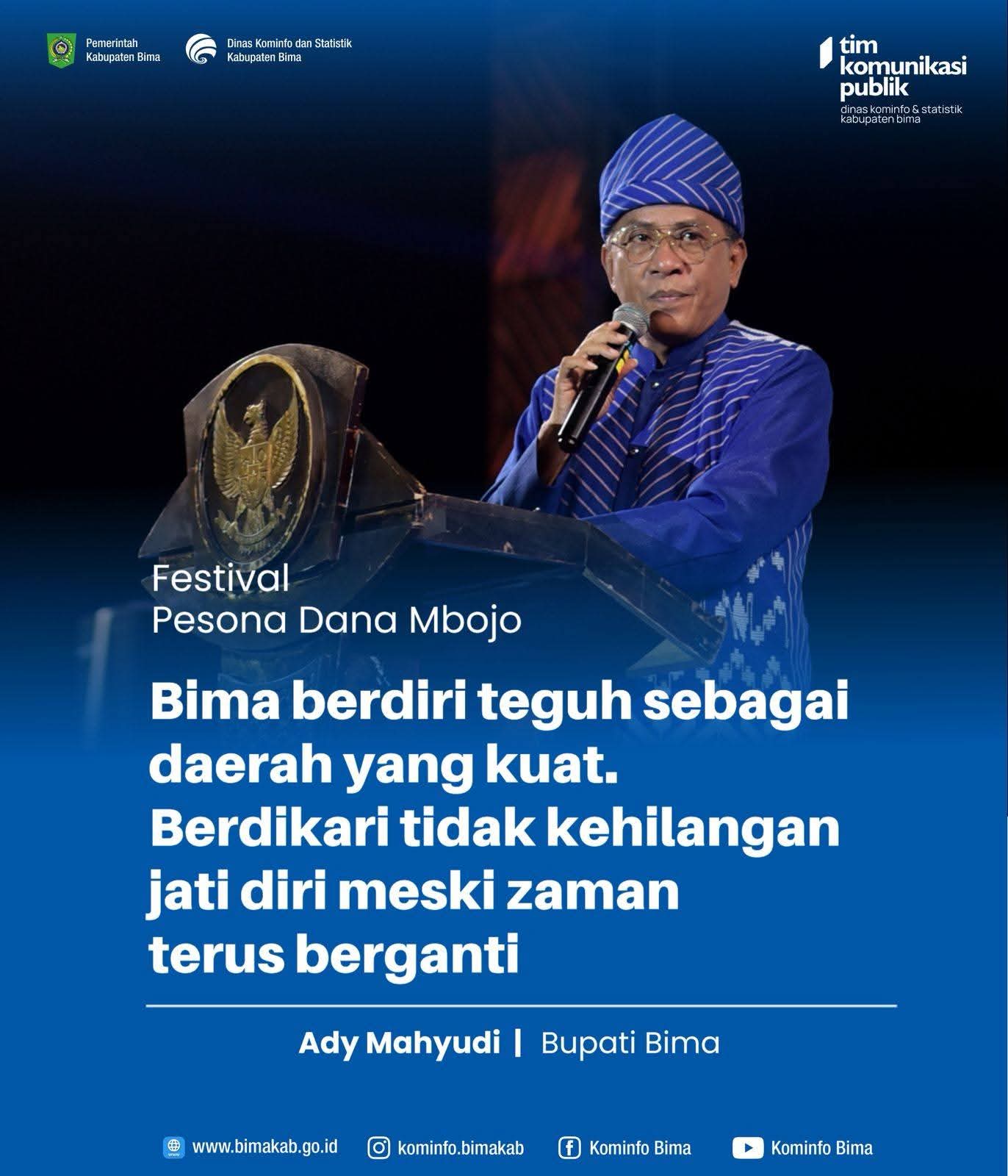 “Pemerintah Kabupaten Bima berkomitmen penuh untuk terus mendukung ikhtiar dan eksistensi kelompok seni, paguyuban dan kolaborasi seni budaya di daerah ini..