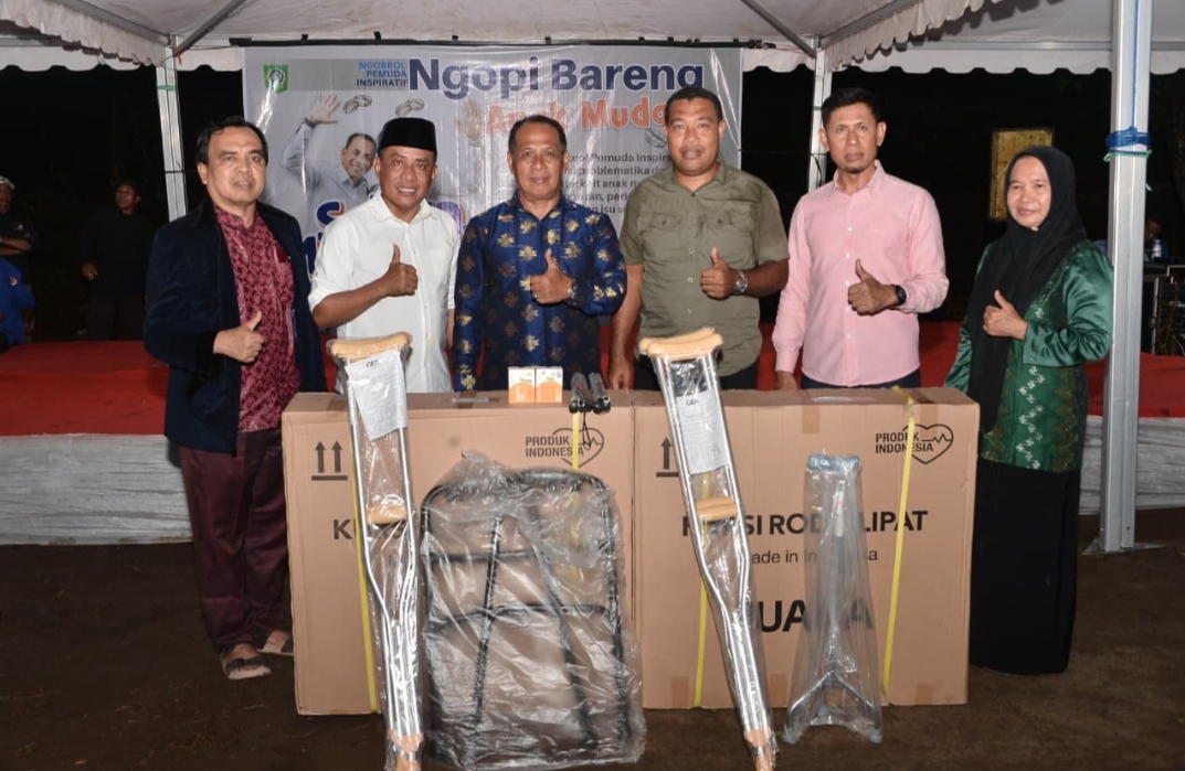 Bantuan lain yang diserahkan pada malam tersebut yaitu yaitu kursi roda, tongkat ketiak dan alat bantu dengar untuk kelompok difabel.