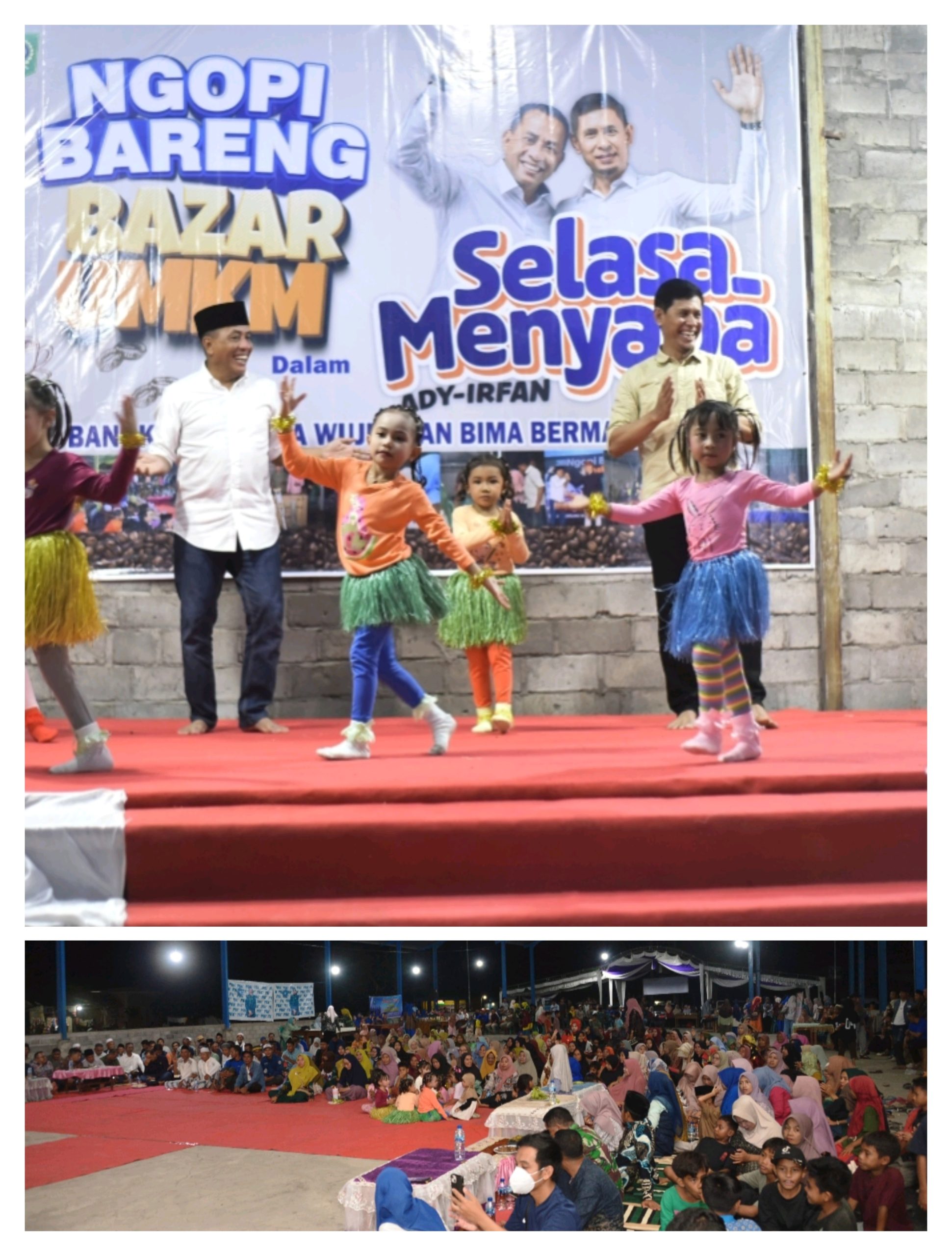 BIMA, Kabaroposisi, Id– Setelah sebelumnya disambut dengan meriah oleh tampilan Hadrah dan Marching band SMA Negeri 1 Sanggar, Kegiatan Selasa Menyapa di Desa Kore dan Boro berlanjut pada malam harinya yaitu “Ngopi Bareng Pemuda Inspiratif” yang dikolaborasikan dengan Bazar UMKM di Gedung Serba Guna La Hami Kore.