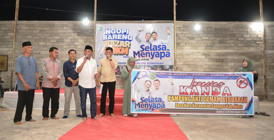 BIMA, Kabaroposisi, Id– Dukungan pada sektor kesehatan melalui program Selasa Menyapa selain diarahkan pada beragam layanan pemeriksaan kesehatan dan pengobatan gratis, juga pencegahan penyakit Demam Berdarah melalui pencanangan Kampung Anti Demam Berdarah (KANDA) yang dihelat Rabu malam (29/10) bersamaan dengan Acara Ngopi Bareng Selasa Menyapa Kecamatan Sanggar di Gedung Serbaguna La Hami Kore.