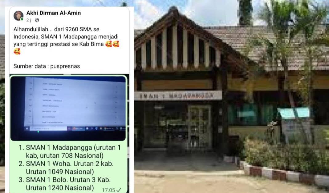 Informasinya, dari total 9.260 SMA di seluruh Indonesia, SMAN 1 Madapangga sukses menembus peringkat 708 Nasional. Raihan ini menempatkan sekolah tersebut di posisi puncak (Urutan 1) untuk skala kabupaten, melampaui sekolah-sekolah unggulan lainnya di wilayah tersebut.